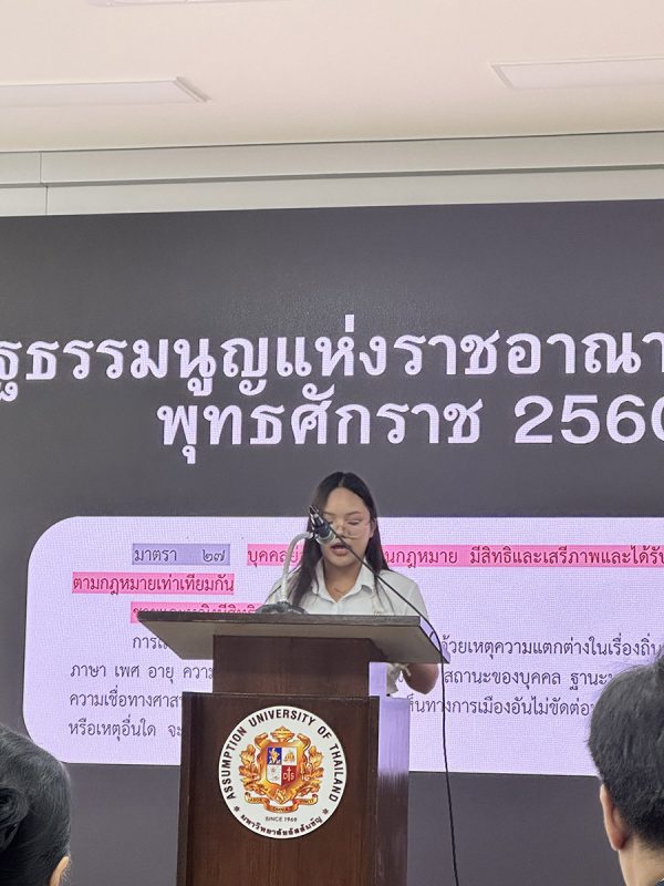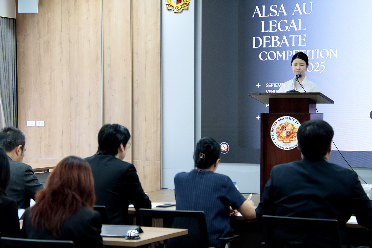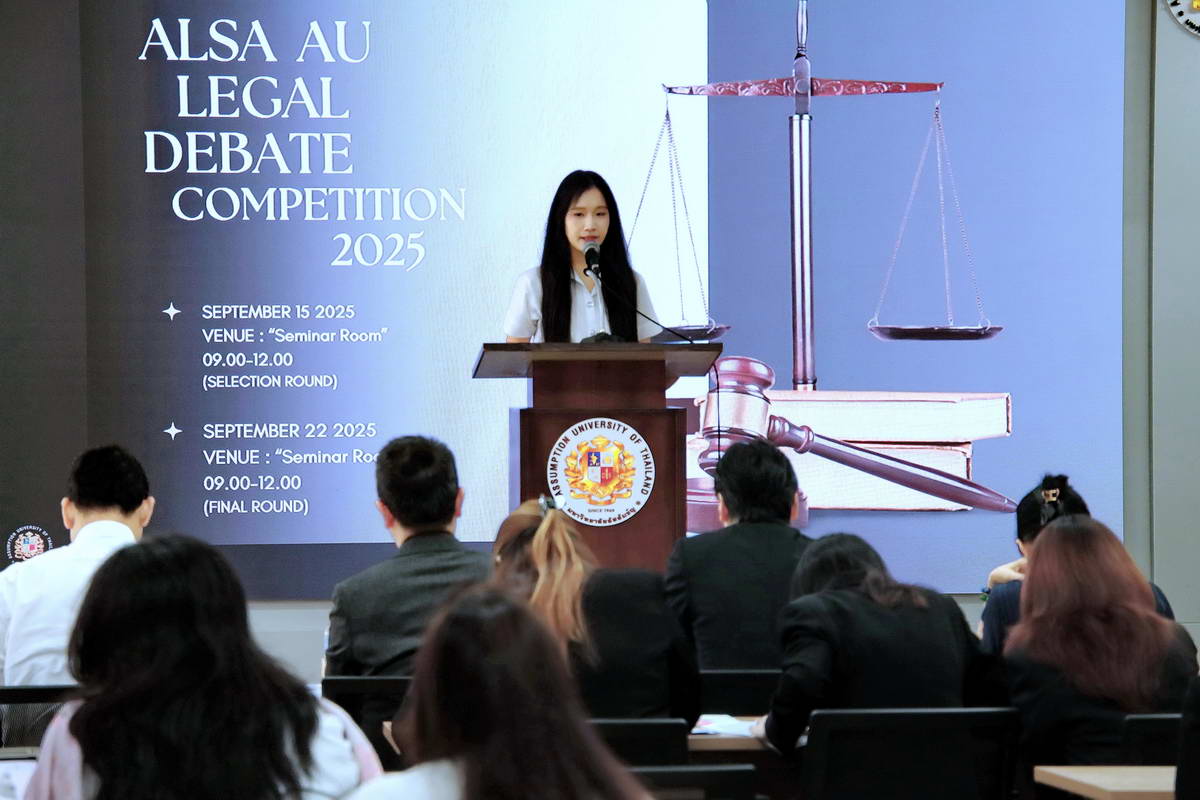 The Thomas Aquinas School of Law (TASL), Assumption University of Thailand (AU), hosted the ALSA AU Legal Debate Competition 2025 on September 15 and 22 at Seminar Room,De Montfort Hall, Hua Mak Campus. The event, organized by the Assumption University chapter of the Asian Law Students’ Association (ALSA), was designed to strengthen law students’ ability to think critically, speak persuasively, and analyze complex legal issues.