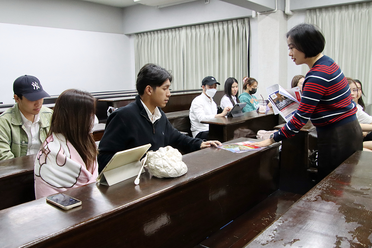 The event drew enthusiastic participation from law students at the Thomas Aquinas School of Law, keen to pursue advanced legal studies. Students actively engaged with the speaker, gaining firsthand insights and expert advice on navigating the journey to postgraduate education. Also in attendance were Dr. Tanasarn Chonpanish, Assistant Dean for Administrative Affairs, and Mr. Artit Pinpak, Assistant Dean for Quality Assurance and Program Director of the Bachelor of Laws (International Program), who extended a warm reception to the distinguished guest from Middlesex University.