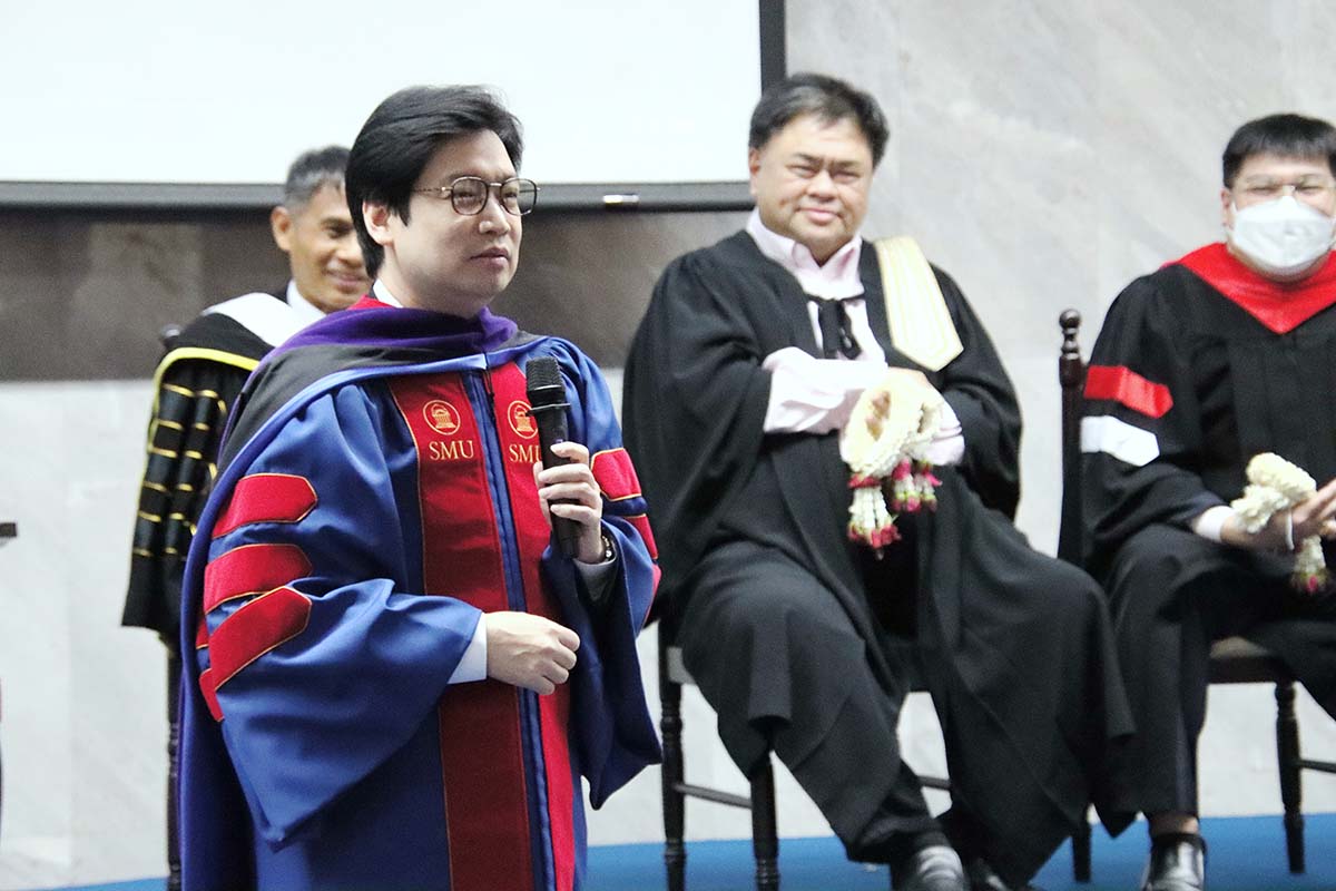 In his opening address, Dr. Norarit Sudsanguan, Dean of the Thomas Aquinas School of Law, emphasized the importance of integrity, discipline, and critical thinking in legal education. He also underscored the School’s unwavering commitment to educational equality, stating that all students, regardless of financial status or family background, must be given the opportunity to succeed and thrive in the legal profession. “At Thomas Aquinas, we believe in empowering every student with the tools, values, and support they need to become agents of justice,” he noted.